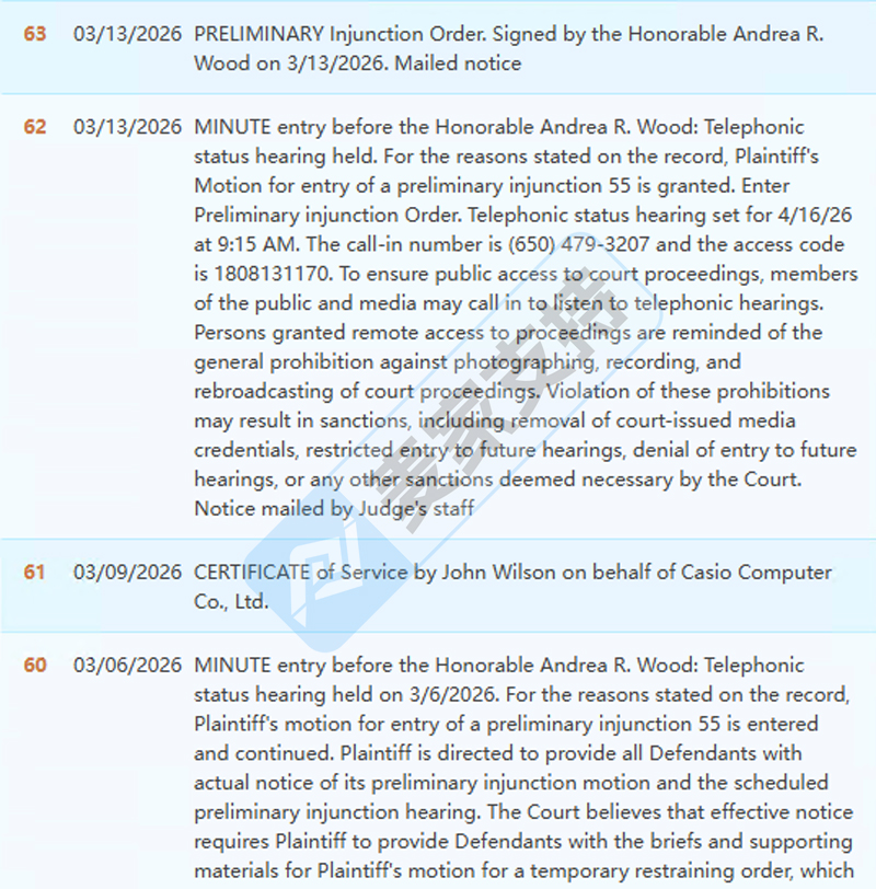 | 2026-cv-02661 | 03/10/2026 | HSP | Casio 卡西欧 |