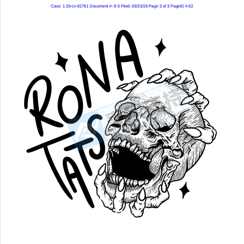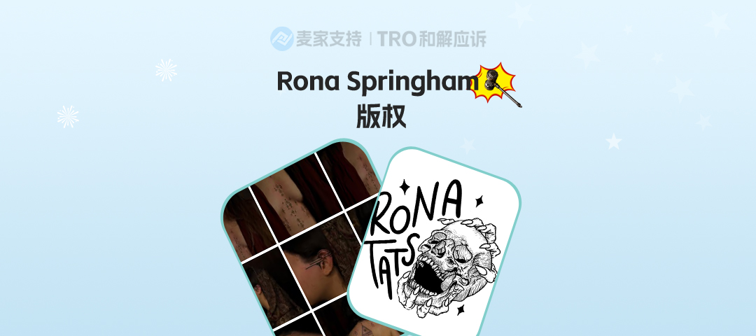 本案是David律所代理英国纹身艺术家Rona Springham发起的版权维权,涉案图片是原告于2025年7月8日获得美国版权认证的纹身作品,版权号为:VA 2-468-860,目前该案件处于前期立案阶段,暂未获批TRO临时限制令,跨境卖家需尽快排查并下架高危作品!