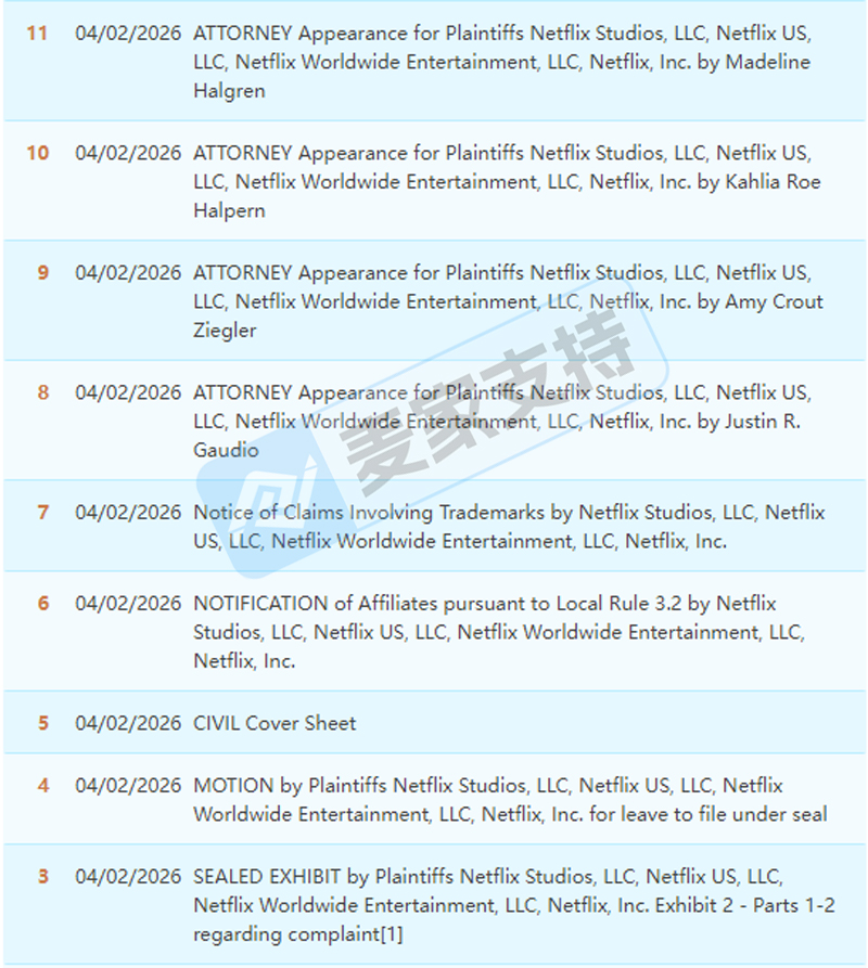 品牌方:Netflix, Inc., Netflix Studios, LLC, Netflix US, LLC, and Netflix Worldwide Entertainment, LLC