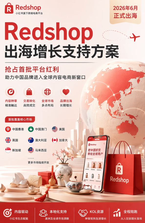 在成功重塑了国内消费决策逻辑后,小红书正带着它最核心的基因——社区内容与审美生活,正式向全球市场发起冲击。随着官方出海项目 redshop 的布局日益清晰,这不仅是一个跨境电商平台的诞生,更是小红书全球化战略的里程碑。