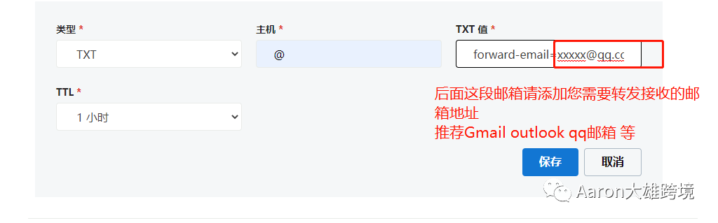 注:之前有小伙伴反馈说用qq邮箱经常收不到邮箱,所以这里设置转发邮箱的话,最好选用海外邮箱像gmail、outlook这些邮箱地址。