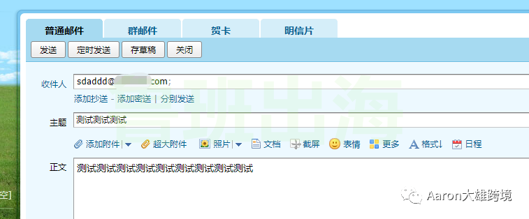 使用qq邮箱给随便拟的一个邮箱前缀+域名邮箱后缀发送一封测试邮件