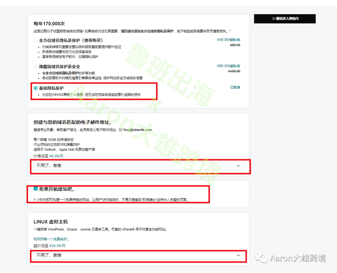 购买无需选择其他付费项目,我们只需要最简单的就好