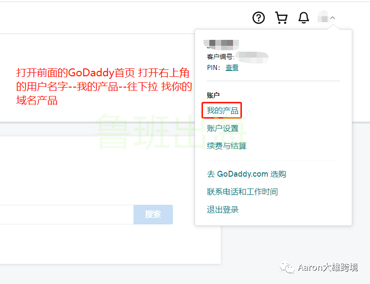 到了这一步我们就重新打开前面购买域名时的GoDaddy的网站,点击购买的域名,选中域名后面的DNS 开始添加相关解析内容。