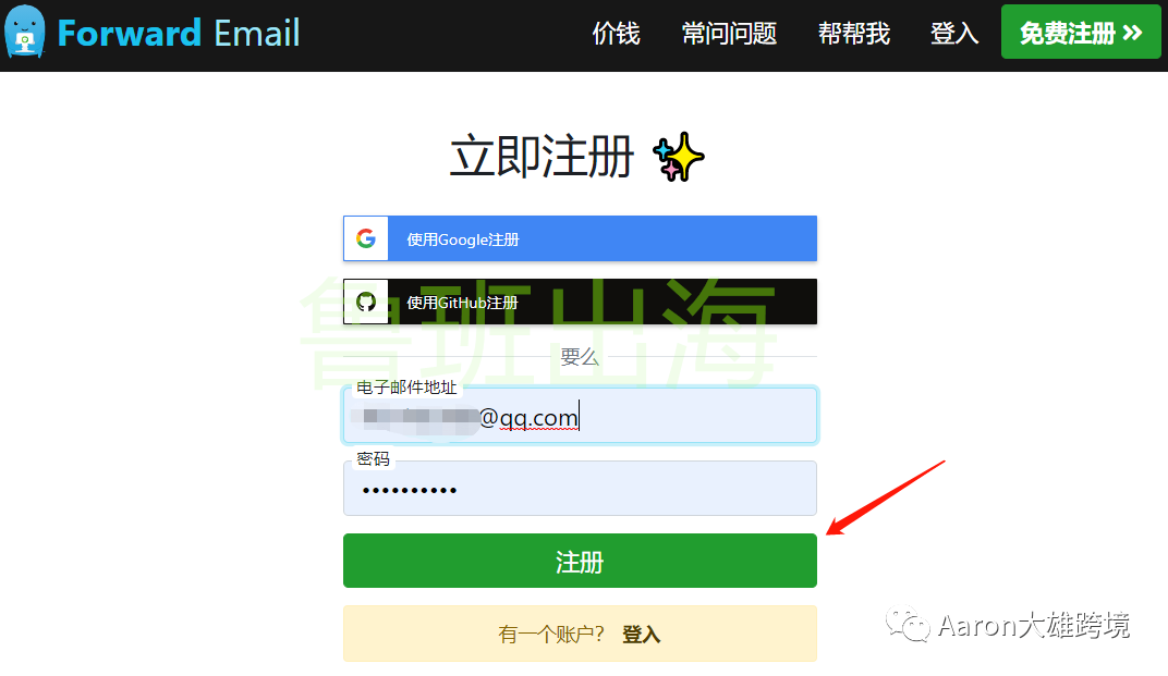 话不多说先打开https://forwardemail.net/zh/register 网址,没注册过的小伙伴建议使用邮箱注册一个ForwardEmail账号。