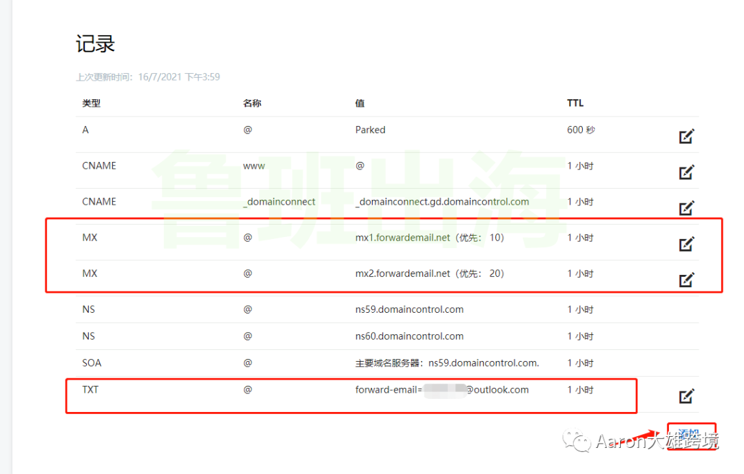 到了这个步骤保存成功后MX记录TXT记录都显示绿色的√,就基本完成了,我们来测试以下是否可以收到吧