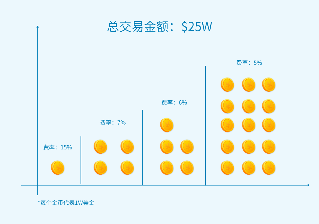 第四层级是超出10万美金的部分,佣金费率为5%,需支付7500美金;