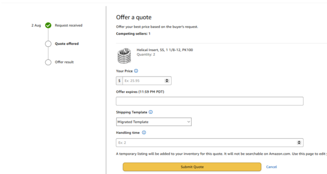 有了亚马逊自定义报价工具(Custom Quote Engine)后,买卖双方可以在线询盘、报价,增加了成单的可能性。