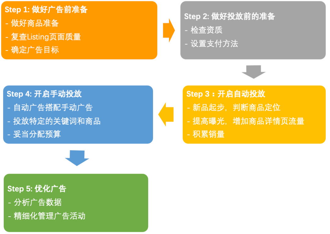 🔉小贴士:了解亚马逊广告活动基本流程,步步比照,高效投放: