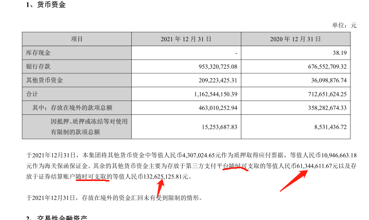 这张图可以看到安克的库存现金和银行存款,安克的借款并不多,随时可以支取的现金金额就有近11.4亿元人民币,