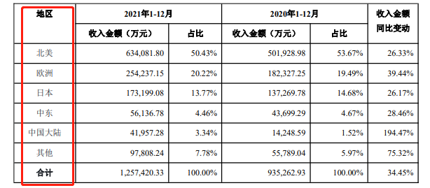 以及安克在各大洲的销售额也是有详细披露的~见下图: