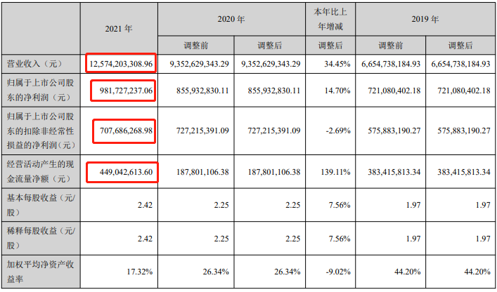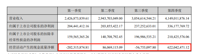 21年安克营收125.7亿,去年同期营收93.5亿,比去年同期增长34.45%。归属上市公司净利润为9.8亿,比上年同期增长14.7%;归属上市公司扣非后的净利润为7.07亿,比上期减少2.69%,经营活动产生的现金流净额为4.49亿,比上年同期增长了139.11%,上一年这个数字为1.87亿。安克的财报里把每个季度的业绩也都分别罗列出来了——