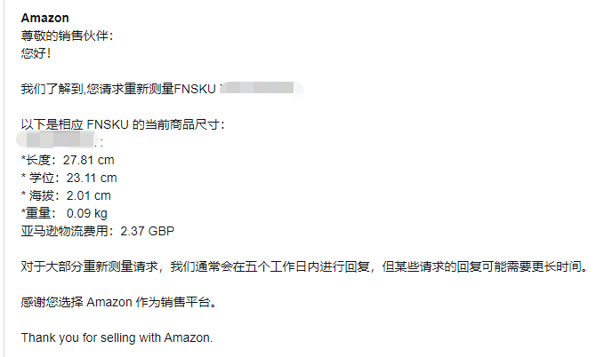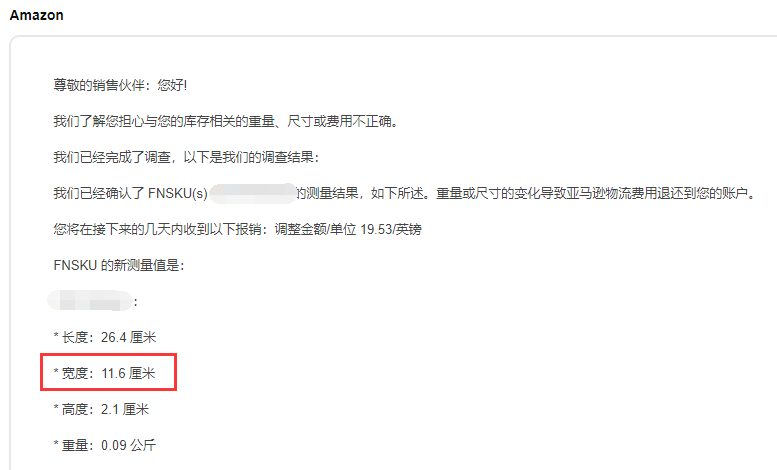 这次我们终于得到了正确的信息,之前发货而多收的FBA费用也得到了赔偿。