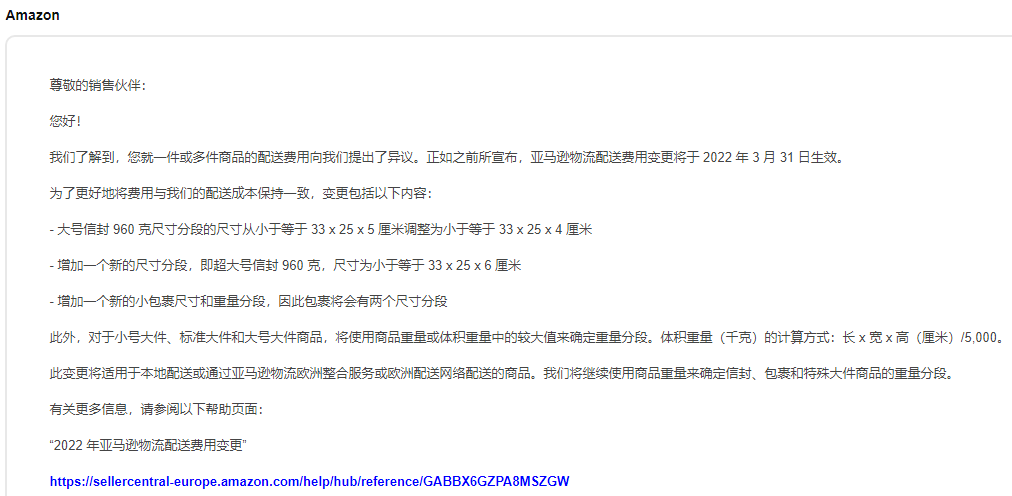 亚马逊欧洲站的FBA费用调整是在3月31日正式生效的。