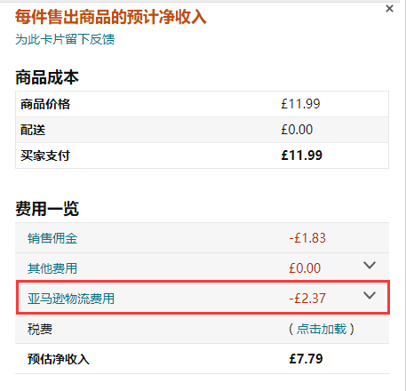 所以我们知道,2.37英镑的FBA费用肯定是过高的。