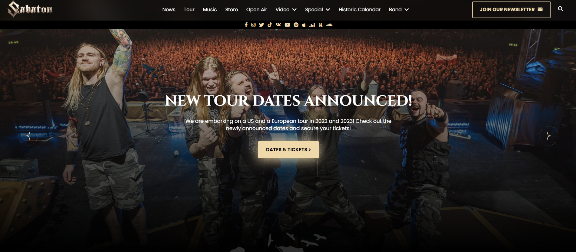Sabaton是来自瑞典法伦的一支五人金属乐队,成立于1999年。乐队的歌曲内容围绕军事史上的经典战役、英雄人物等 。乐队作品的特点为power riff的吉他伴奏与主唱Joakim Brodén具有鲜明特色的低音男声演唱 。乐队的现成员为:Joakim Brodén(主唱),Chris Rörland(吉他),Tommy Johansson(吉他),Pär Sundström(贝司)与Hannes Van Dahl(鼓) 。