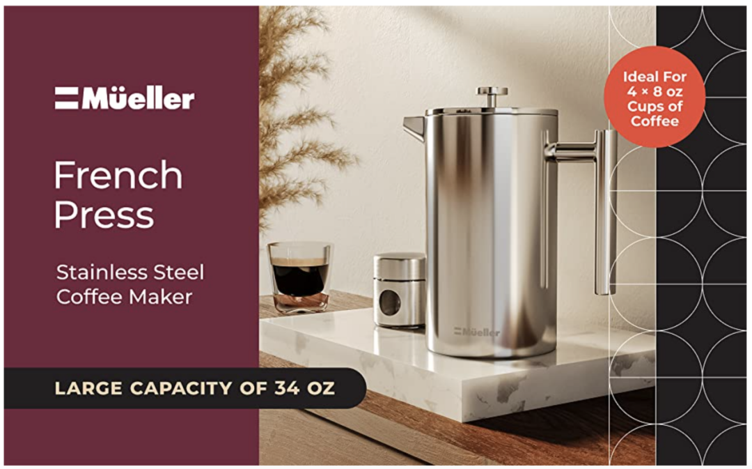 拥有了一个设计简约、过目难忘、与品牌相适应的logo之后,还要把它放在尽可能多的地方让消费者看见,不断加深消费者对这个logo及它背后所代表的品牌的形象。Mueller这个咖啡用具品牌为例,logo是一个类似等号的图形(实际上是品牌起源国奥地利的国旗,在双色图中作出了相应的调整),简约的设计与品牌的起源、所代表的文化、针对的客户群体品味相适应。
