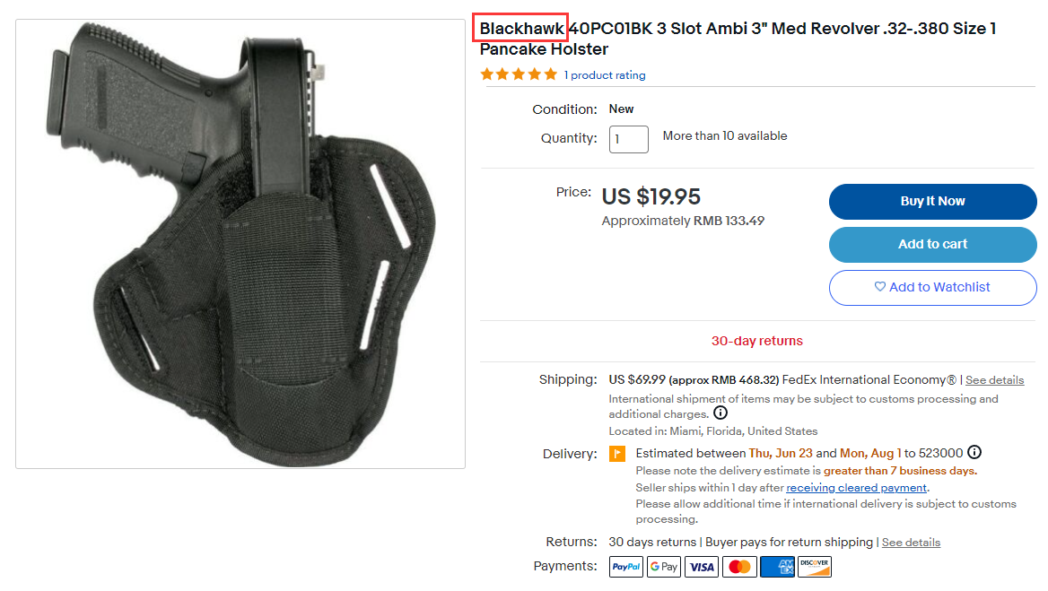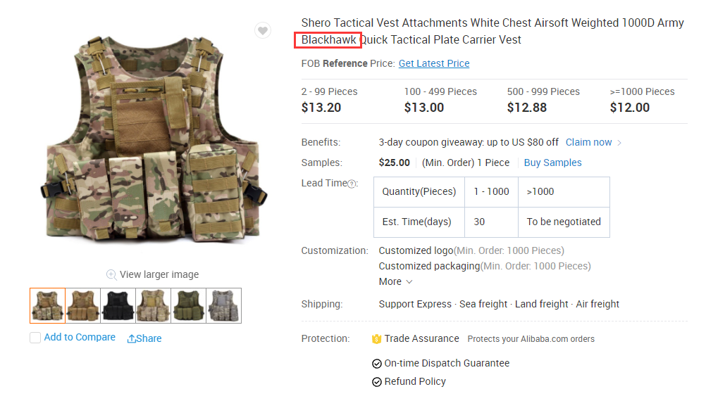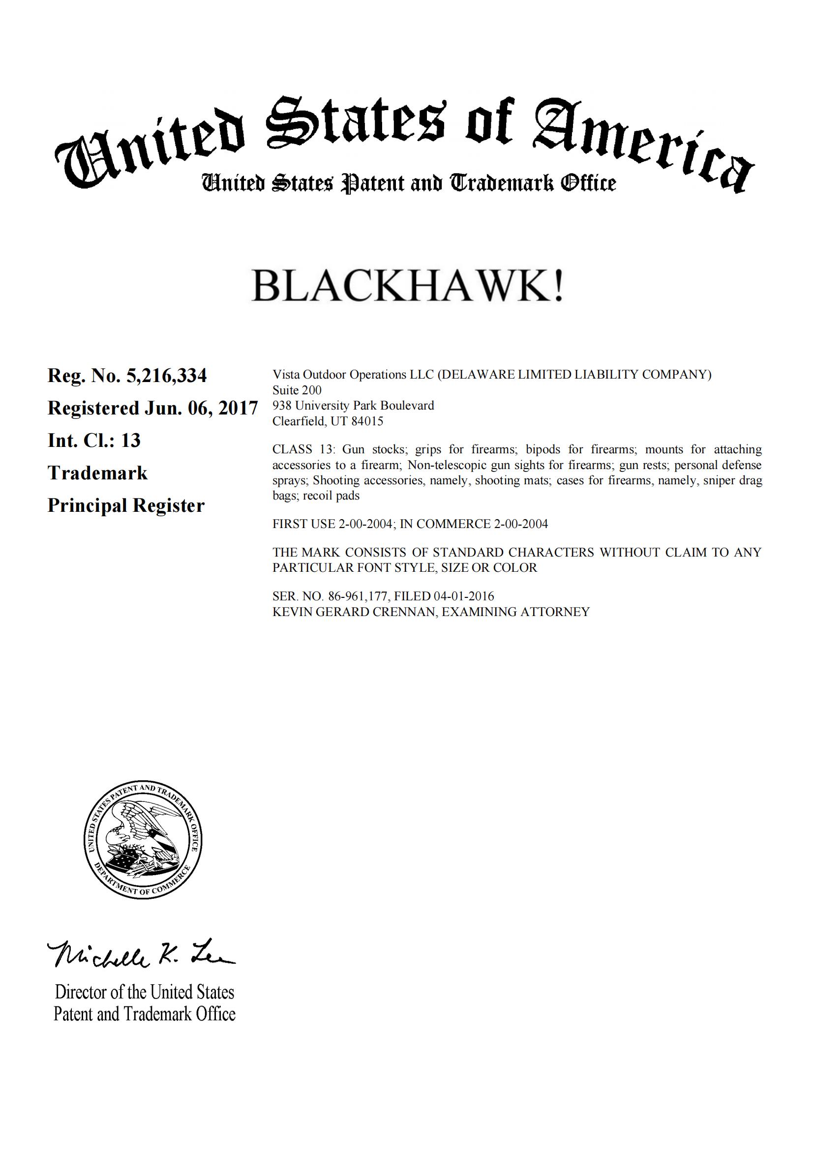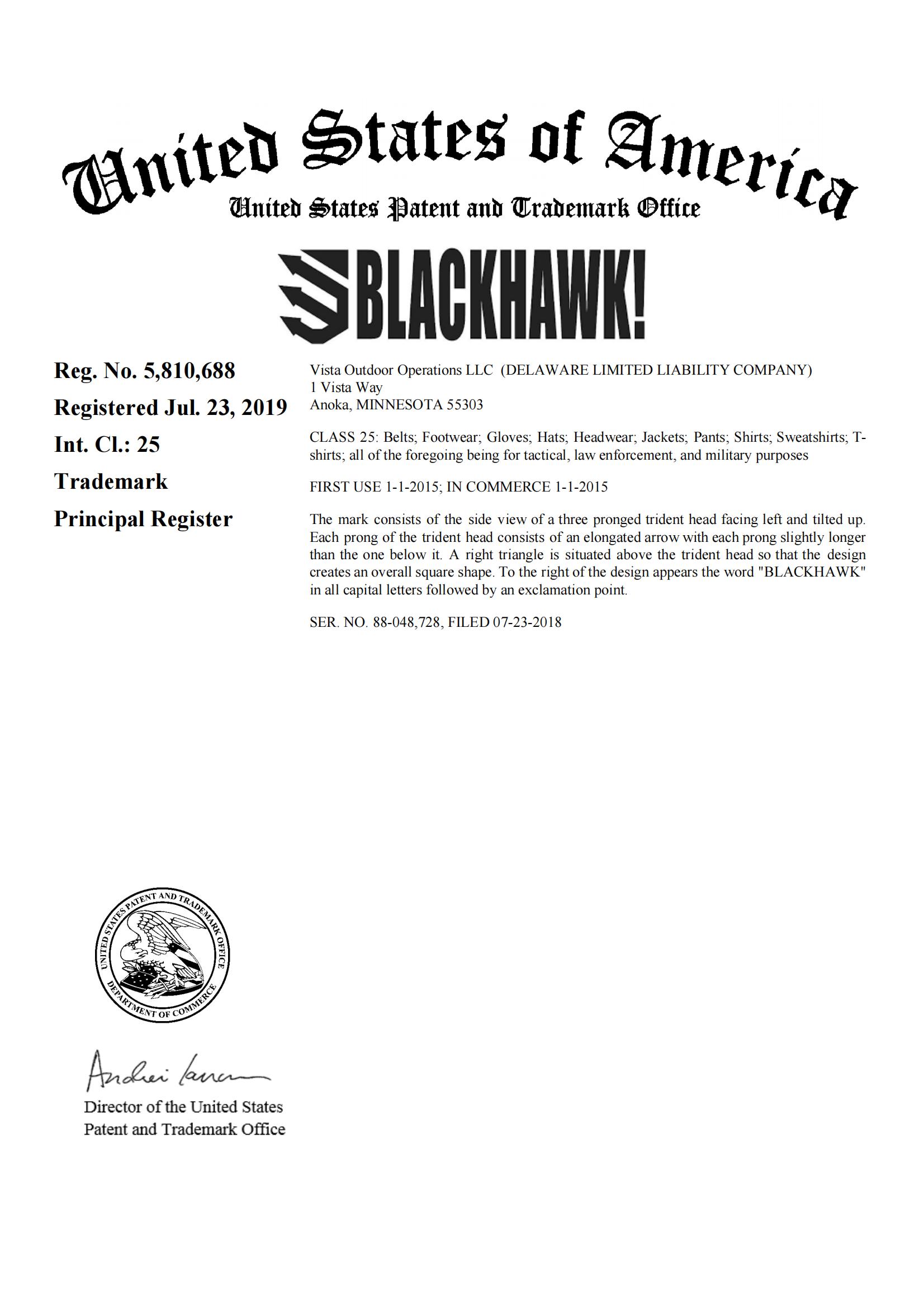 品牌介绍: 由退役海豹突击队成员Mike Noell(麦克.诺艾尔)于1993年创办的黑鹰刀具公司凭借其精致,卓越的产品而赢得世界各国特种部队的信赖和好评。黑鹰现阶段的产品设计灵感来自麦克.诺艾尔在美国海军服役的经历。 美国黑鹰产品集团是一家生产专用军警战术装备的公司,同时也是美国国防部认可的美国军队和执法强力部门战术装备的供应商之一。其产品以实用、耐用和安全著称,并且正在被大量地装备在美国现役部队、特种部队和特警单位中。该系列产品在伊拉克、阿富汗经历过实战考验。 案件参数: 案件号:22-cv-3017 起诉时间:2022/6/9 起诉类型:商标 品牌方:Vista Outdoor Operations LLC 代理律所:Keith 注册商标: 刊登举例: