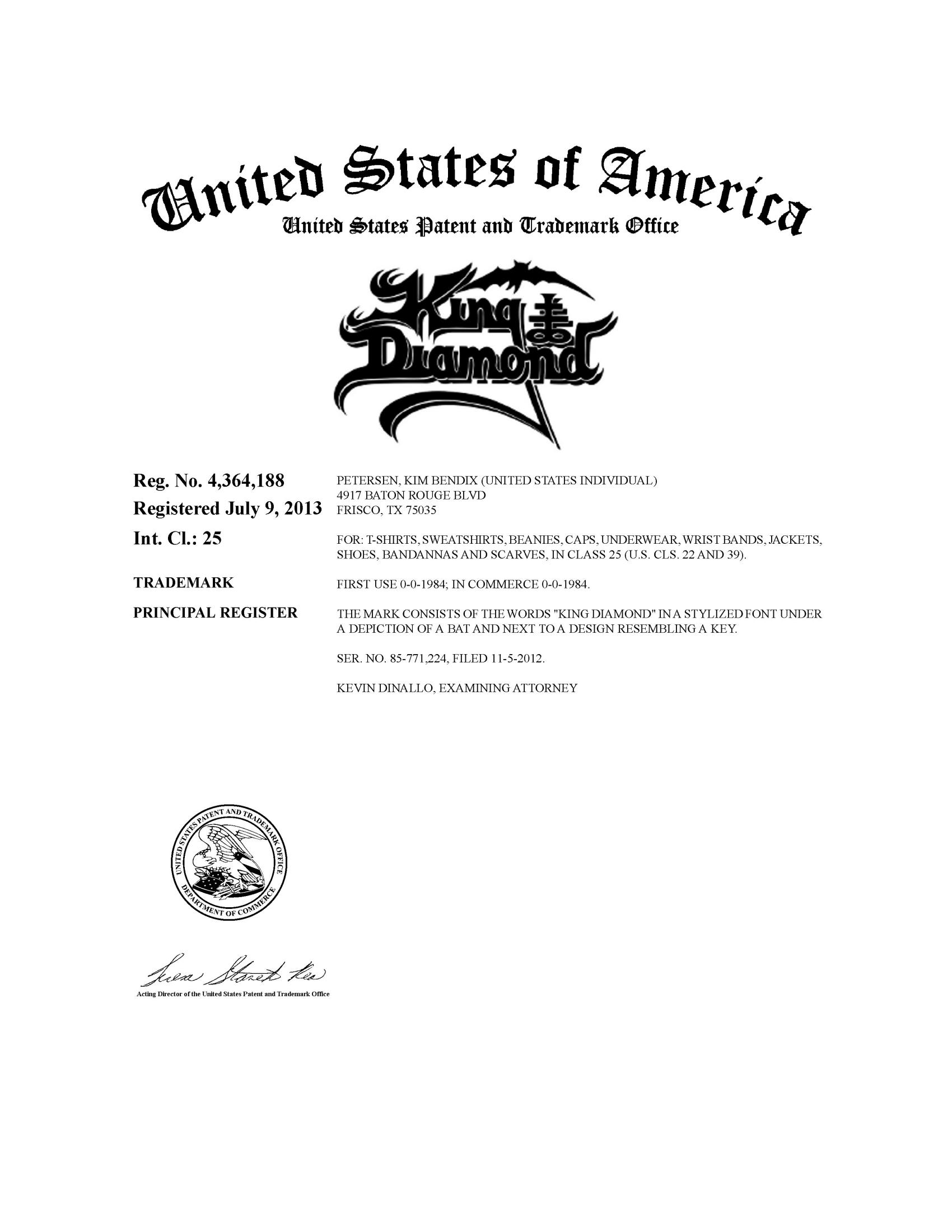 king Diamond 是前Mercyful Fate乐队主唱的个人计划。1980年,来自丹麦的Mercyful Fate以其独一无二的邪恶、黑暗的音乐氛围吸引了当时地下重金属音乐界的关注,而正是从那时起,乐队开始了自己传奇的音乐生涯。乐队最初事由King Diamond发起,在阵容稳定下来之前,曾有两到三个吉他手和不同的鼓手、贝司手与Diamond合作过,并曾经录制了一些小样。在Mercyful Fate解散后,King Diamond以自己的名字继续着他的音乐传奇,他先后和Michael Denner、Andy La Rocque、Pete Blakk等多位吉他手合作,制作了一张张出色的金属专辑,类似Fatal Portrait、The Eye和Abigail这样的专辑都已经成为重金属历史上经典的专辑。直到后来重组MERCYFUL FATE后,King Diamond还一直继续发表着个人专辑,包括后来出色的Spider's Lullaby和Voodoo等佳作。