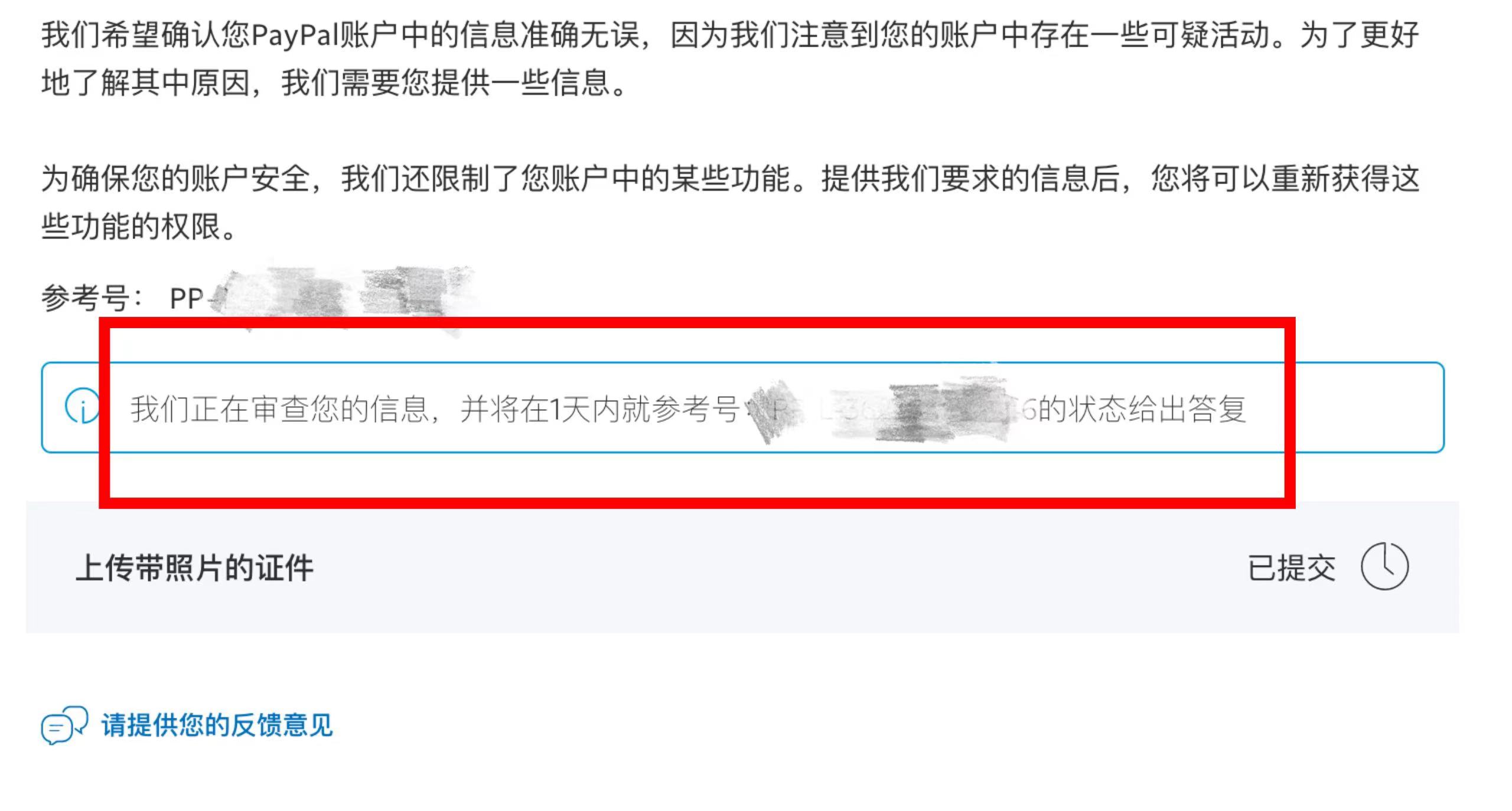 根据页面提升,完成所有验证信息并提交之后,PP一般会在24小时内完成验证并给予反馈意见。