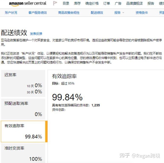 4.有效追踪率(VTR)高于95%卖家需要根据亚马逊各站点的要求,提供订单物流追踪信息,让买家能够根据追踪编码了解订单的配送状态。VTR高于95%,可以帮助您获得更好的评分和销量。当您的商品在美国站点进行销售时,指标不达标可能导致账户停用。