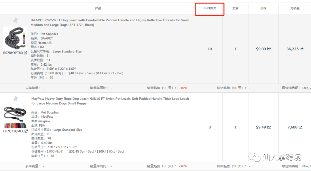 这其中有一个参数叫做P-INDEX(意思为“竞争指数”),满分为10分,各位可以到这里查一查自己的ASIN,看看自己“真正意义上的竞争对手”有哪些