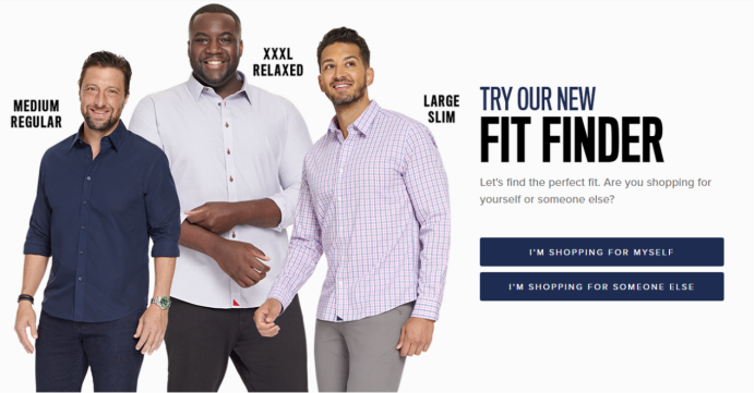 用户通过回答身高、体重、体型相关的问题,UNTUCKit会自动推荐适合的尺码,为消费者精准找到适合自己的衬衣,同时,也增进消费者对UNTUCKit品牌的好感。