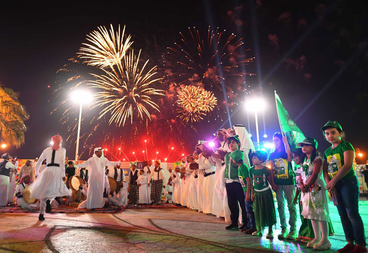 沙特国庆日庆祝活动广泛而盛大,人们会走上街头参加节日游行、观看大型航展和烟花表演,亲朋好友会在假日欢聚一堂,消费市场也将迅速升温。