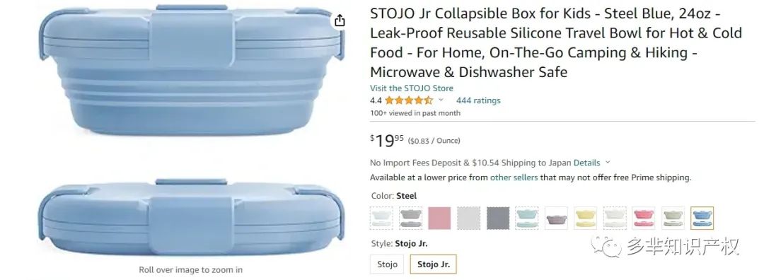 另外,该品牌还在售卖这种折叠饭盒,虽然我们目前还未能查询到该款的专利信息,但卖家也需要警惕!