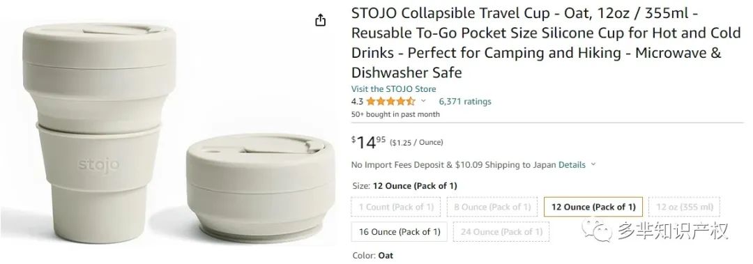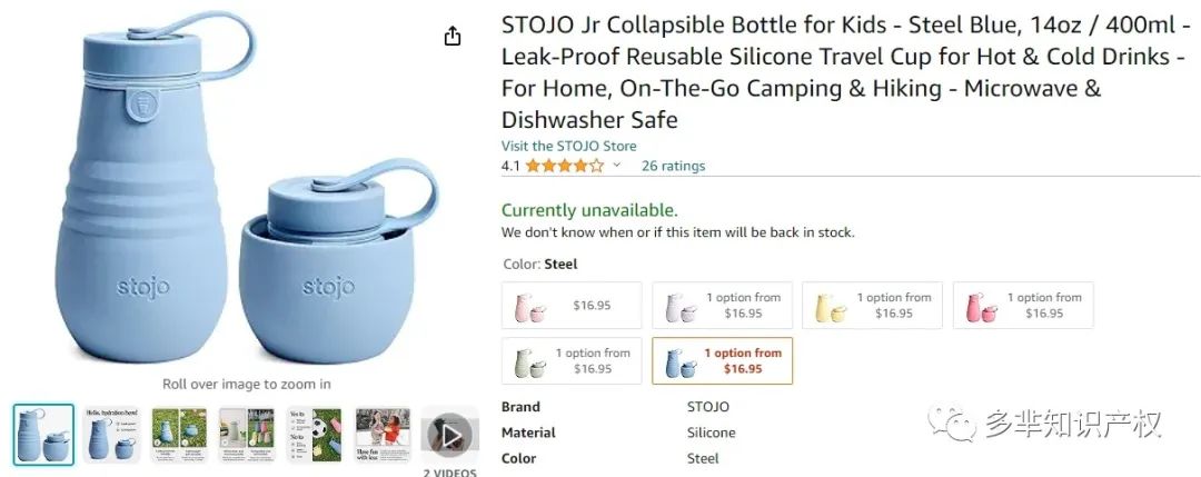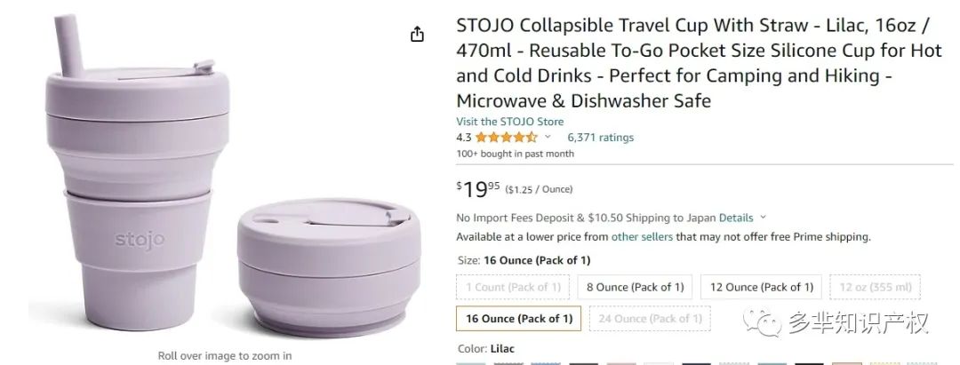 本案件主要涉及产品是折叠旅行水杯,以下为部分产品销售示例。