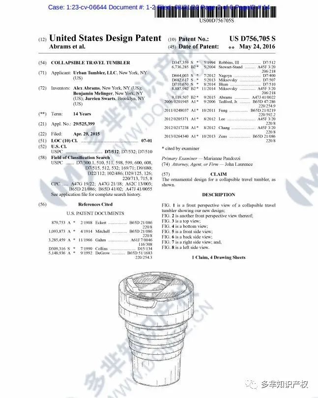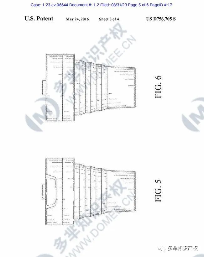 这次是该品牌首次发起诉讼,截止至9月21日,法院还未下TRO。但我们查询到还有同品牌类似商品的专利,建议一并排查!
