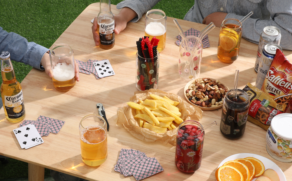 像是下图这张产品使用图片,一些亲朋好友围在桌上聊天、打扑克牌、喝啤酒,他们用这个杯子去塑造欢乐、放松情境,试图与消费者的内心产生共鸣,想让他们觉得下班时间、周末时间一到,就是需要这些杯子,畅饮、聚会。