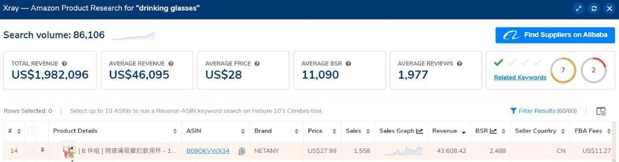 而更惊人的调查结果是,这个产品除了在视觉上相对突出外,在超过三万个竞争对手中,它以评论数量不到400 ,但却有惊人的四万三千美金月营收!小小玻璃杯也可以卖到一个月百万营收,不得不感叹美国市场真的是大!