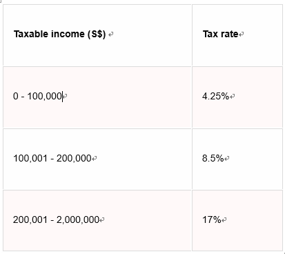 从2020年开始,对于符合条件的新成立的公司,第一个100000新币的收入,免征75%,100001新币到200000新币,免征50%。