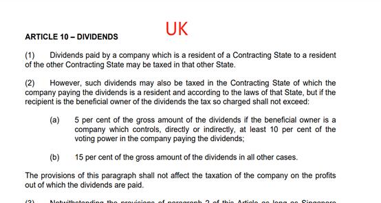 根据List of DTAs, Limited DTAs and EOI Arrangements可以看到,英国、美国都和新加坡有签署DTA,并且针对很多税种、利息和金融产品,都有双边免税或者税收优惠政策,其中最重要的就是,境外分红部分,详情如下:
