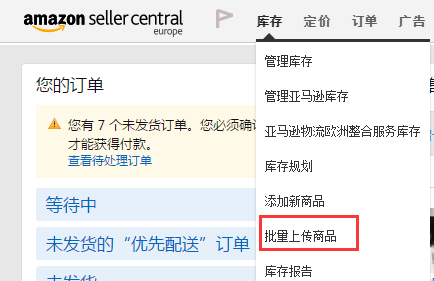 完成表格后将文件保存为“文本文件(制表符分隔)”格式,进入后台Inventory库存——Add Products via Upload批量上传商品——Check and Upload your Inventory File上传您的库存文件——Upload