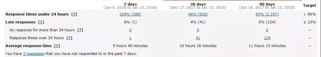 所以,卖家为了降低拿到差评的机率以及提高顾客满意度,最理想的状态是卖家能在24小时内回应买家的问题。