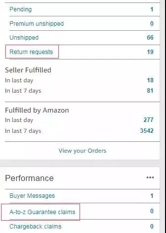 除去邮件的回复,如果之前自发货较多的卖家,也需要关注return request,A-z claim以便及时处理。