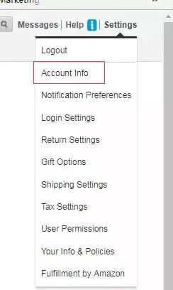 1. 登录亚马逊后台,选择Settings下面的下拉菜单Account Info
