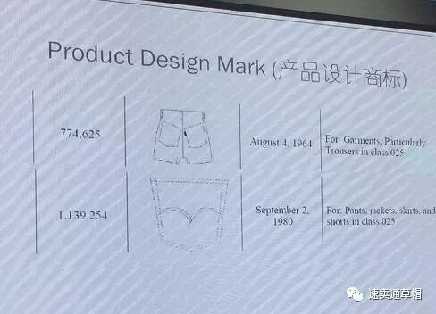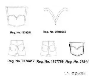 Levis最近热度也比较高,GBC主要看你卖的牛仔裤的屁股口袋,如果口袋有如下的图案,就侵犯了Levis的权利。