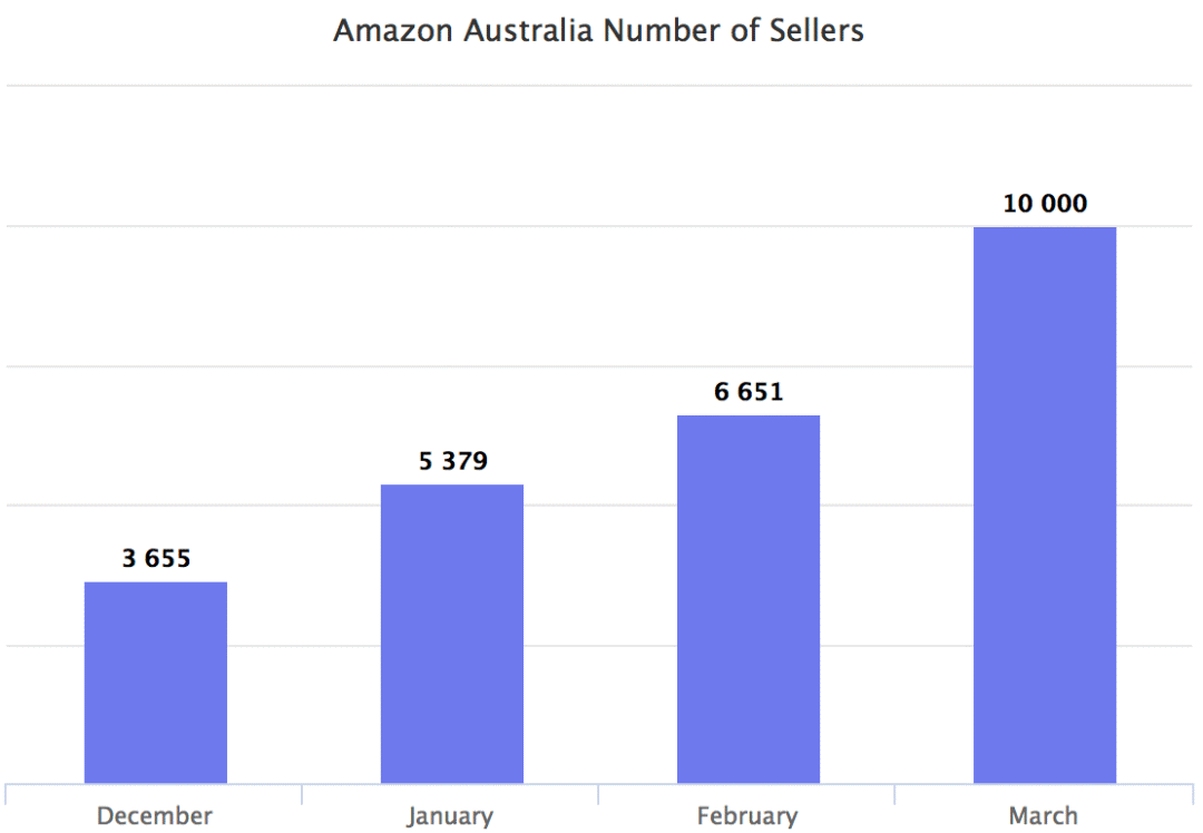 亚马逊从去年12月份推出澳大利亚站点后,目前卖家数量已经达到10,000。仅仅是今年两个月的时间,市场规模就从一月份的5,000翻了一番。可能是之前亚马逊在流程审批上有所限制的原因,直到今年开放自注册通道,卖家数量急增,中国卖家的数量已占到一半以上。