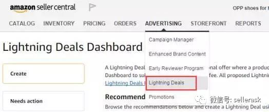 卖家可以自主在后台申请LD(当后台出现LD推荐的时候),可以通过seller central 中的 ADVERTISING找到Lighting Deals,然后按要求进行秒杀申请,如图: