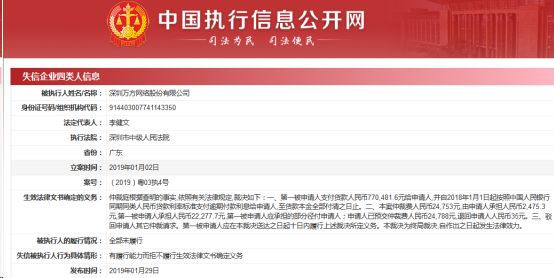 而万方网络控股股东李健文,因“其他妨碍、抗拒执行”,也纳入“失信被执行人”。