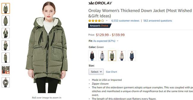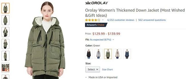 最近,中国“不知名”服装品牌Orolay的一件羽绒服突然在这个冬季成为了亚马逊上的头号畅销产品,并席卷了国外社交媒体,被美国消费者们冠上了“亚马逊外套”的称号。目前,这件Oroley外套销量在亚马逊网站上排名第一,平均评级为4.2星,并斩获了超6500条评论。