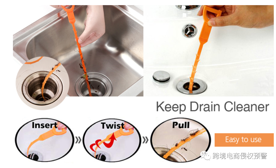 P.S.这款蛇形管道疏通钩与在先的这款美国外观专利,除了手柄部分不同,其他部分一致,所以还是有一定的侵权风险的。目前我们发现该款产品在亚马逊有多家在售,也许是因为这款外观专利刚刚授权,权利人还没有开始发起侵权投诉,也许是觉得其他产品跟自己的外观还不构成侵权,也许是在等后面一次性收割。总之后续有在销售该产品或者打算入场的卖家看到这篇文章后,要注意下专利侵权问题了。