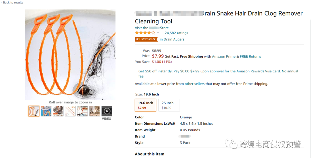 下面这款蛇形管道疏通钩,目前是亚马逊美国站的#1 Best Seller,现有留评数高达24,582,售价在7.99-10.99美金: