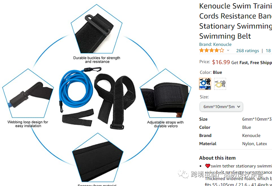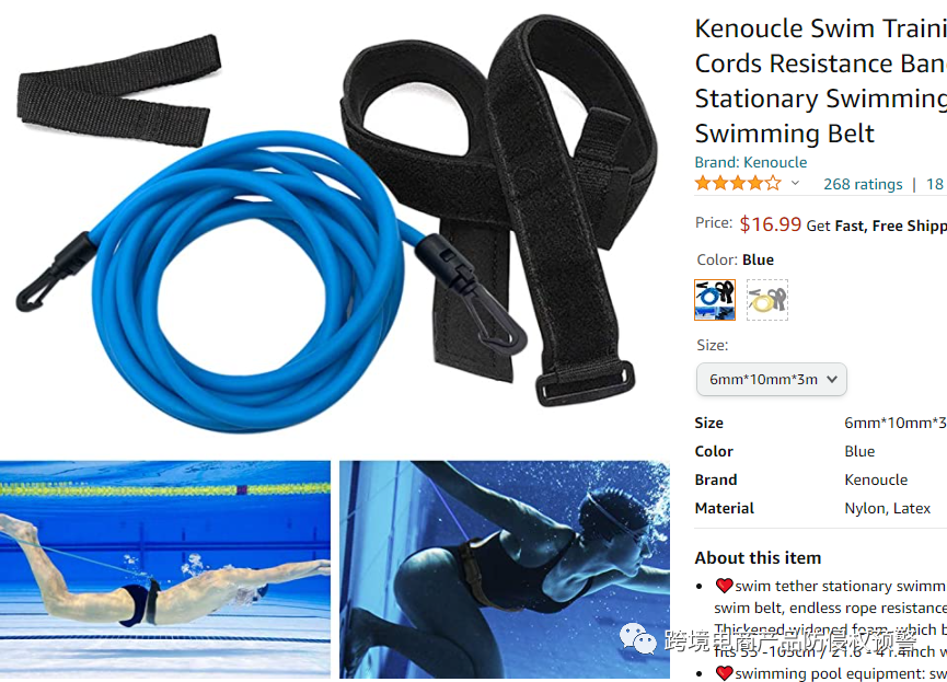 这款【游泳训练腰带】,目前在亚马逊美国站有几位商家正在售卖,列举其中一位商家的销售页面截图: