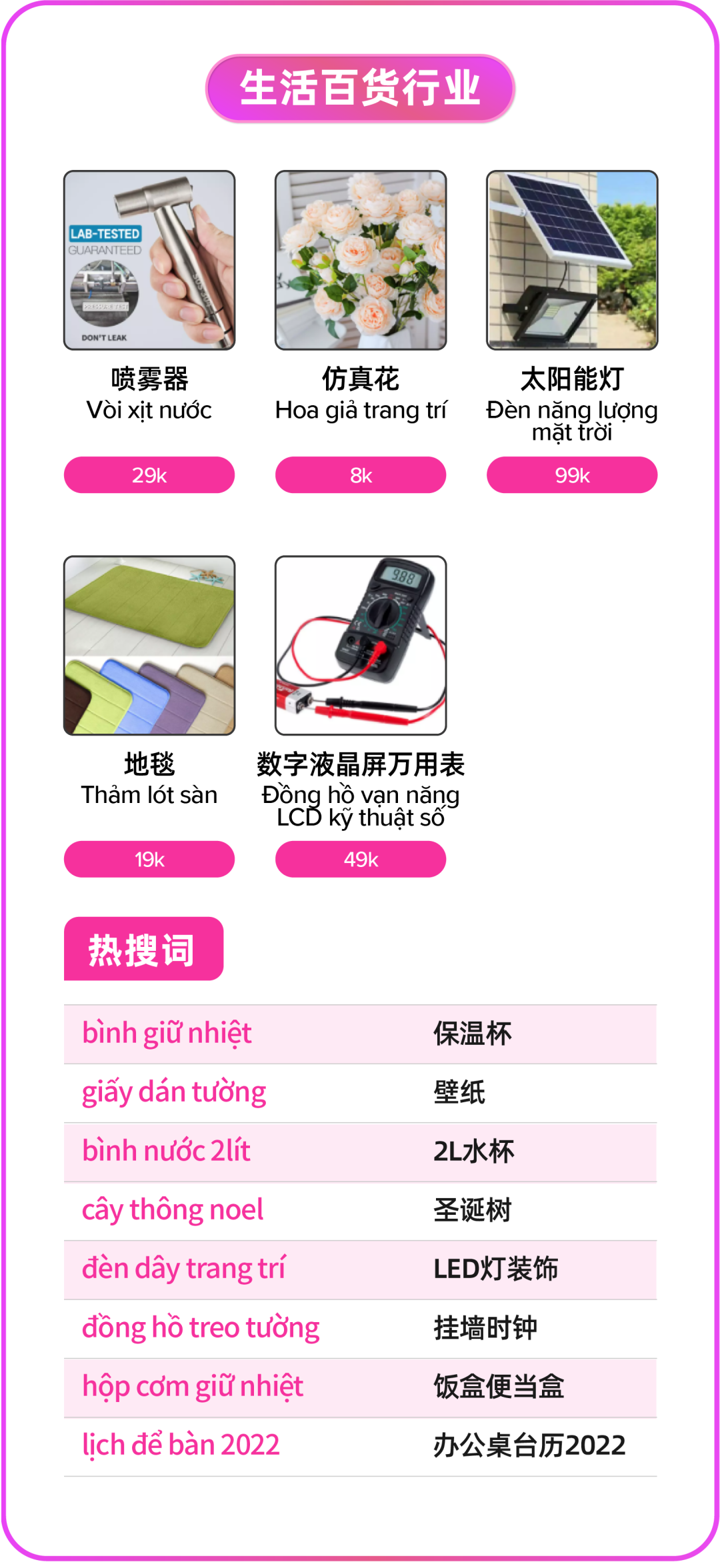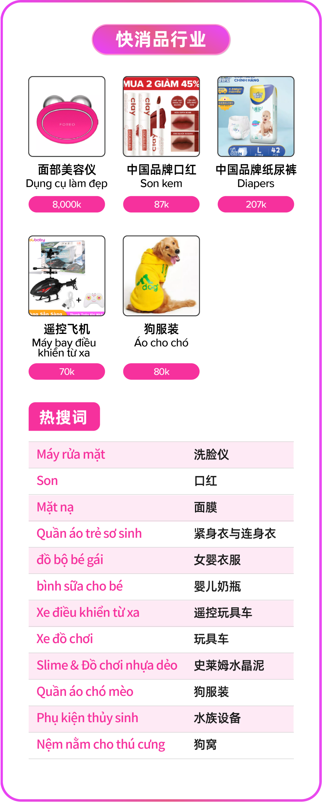 热搜词和爆品上新的重要性不言而喻!接下来小编将一次性奉上四大行业爆品榜和热搜词榜,助力大家越南年货节创造单量新高峰!