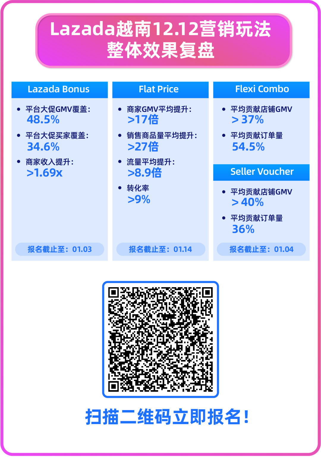 JIDI透露,参与Lazada Bonus和包邮项目则能有效扩大曝光率和转化率。此外参与平台活动是获取流量的重要渠道,商家们可以多参加优惠券Voucher、多件多折Flexi Combo等活动。