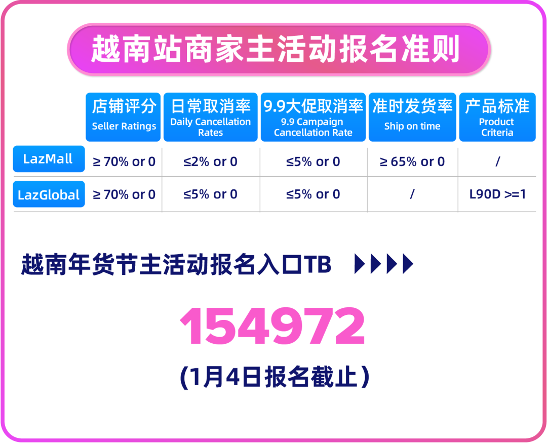 说到新年大家就会想到消费、年货和喜庆。总之,新年就是要红红火火!在中国过年迎新春的同时,与我们相邻的越南同样也会过春节,春节是越南最重要的节日之一。辞旧迎新之际,越南也将上演囤年货、买贺礼等一系列新年消费热潮。而盛大的越南年货节将助力平台商家新年迎头彩!(越南年货节在1月1日即开启预热)